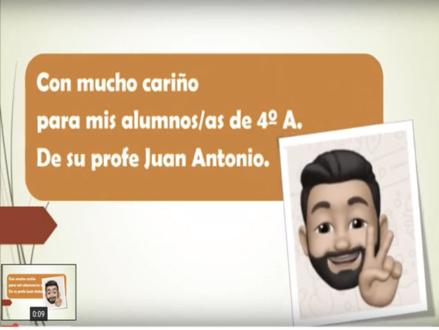 El maestro Juan Antonio ha grabado este simpático vídeo para sus alumnos/as de 4º, para que lo vean y para que ellos también puedan mandarle mensajes, vídeos y poder pasar estos momentos de confinamiento más unidos. Ha querido compartirlo con todos nosotros para extender esta iniciativa al resto de alumnado. Mandarnos vídeos, fotos de lo…