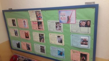 La tarea final queda expuesta en estos murales en cada una de las clases de Infantil.